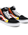 Vintage bir stil ile yeniden piyasaya sürülen Vans'in efsanevi bilekli modeli Flame Sk8-Hi'da desenli kanvas ve süet üst parça, sürekli giyime dayanacak şekilde güçlendirilmiş ayakkabı burnu, destek ve esneklik için dolgulu bilek ve Vans'in imzası olan kauçuk waffle taban vardır.